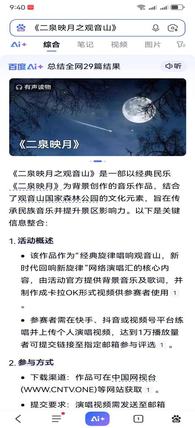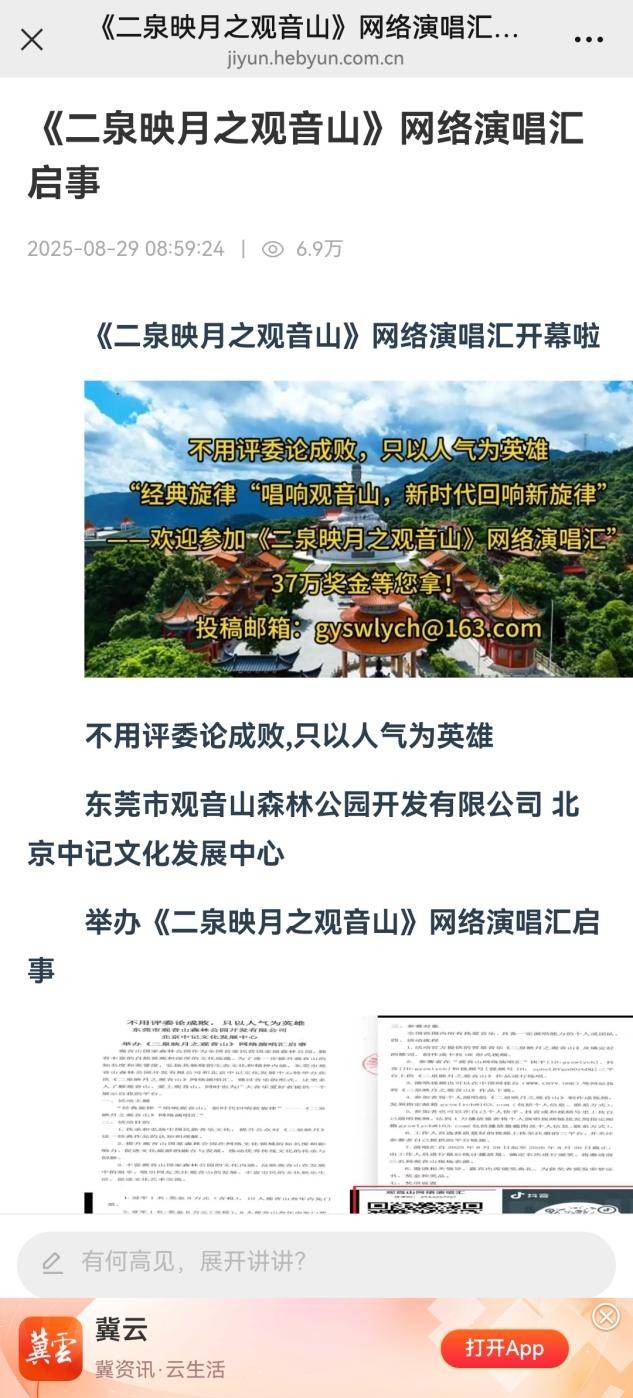 | 《二泉映月之观音山》引关注 近日,由沧海作词的《二泉映月之观音山》引起了网络关注。 《二泉映月之观音山》是一首以东莞观音山国家森林公园为背景创作的网络演唱汇主题曲,结合《二泉映月》经典旋律与观音山生态议题,通过音乐形式反映当地发展中的矛盾与诉求。 活动背景:该作品由东莞市观音山森林公园开发有限公司与北京中记文化发展中心联合推出,旨在通过音乐传播观音山文化,同时引发公众对生态保护、企业行为等问题的关注。 歌词内容以南方电网建设、非法占地等事件为切入点,批判部分企业行为对观音山生态的破坏,如“西气东输观音山段和南方电网齐毁林”“牛鬼蛇神齐奔山上”等表述,暗含对东莞民企遭遇的控诉。 网络演唱汇时间:2025年8月28日启动,持续至2026年8月30日。参与方式:参赛者需使用官方提供的卡拉OK视频演唱并上传至快手、抖音或视频号,达到1万播放量可参与评选。 奖励:冠军奖金8万元,前三名可获观音山三年免门票资格。 争议与影响:该活动因歌词内容引发部分讨论,部分观点认为其借音乐形式表达对东莞观音山生态被破坏的不满,但主办方强调活动旨在弘扬传统文化与生态保护。 《二泉映月之观音山》网络演唱汇活动旨在通过音乐形式传承经典《二泉映月》,并提升全民保护国家森林资源的重要性和扩大观音山国家森林公园的知名度。活动面向全国音乐爱好者,活动持续至2026年8月30日。 ![]() 《二泉映月之观音山》是由沧海作词,采用阿炳的二胡乐曲制作的卡拉OK形似的视频在抖音、快手、视频号平台播放,吸引音乐爱好者进行演唱。广东观音山国家森林公园和北京中记文化发展中心联合举办的“《二泉映月之观音山》网络演唱汇”设置了冠军、亚军、季军各一名和10名优秀奖,举办方拿出了37万元奖金和多份观音山门票进行奖励。 据悉,作词者沧海先生将演唱《二泉映月之观音山》并发布网络,相当期待《二泉映月之观音山》的众多演唱者视听版本现诸网络。 strongprotectionwithoutholes |