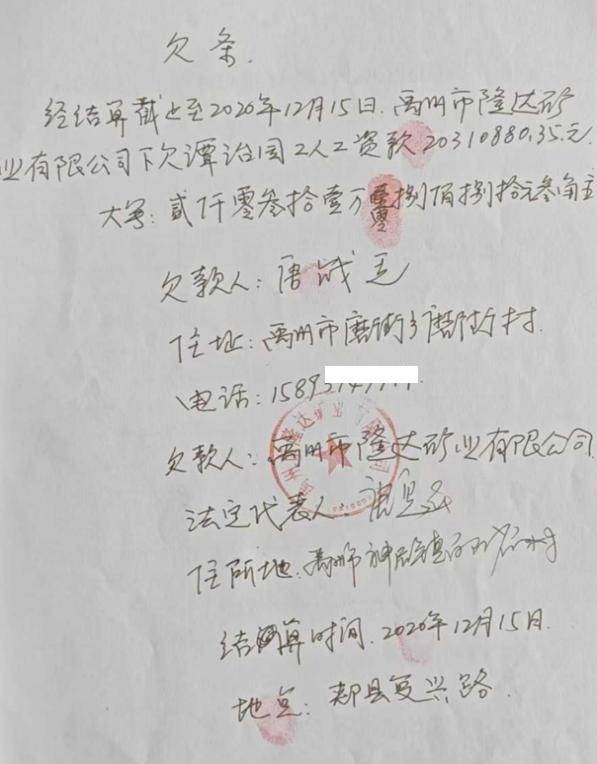 2020年12月15日,隆达矿业公司和实际控制人唐战廷签订结算协议并出具欠条,法人唐魁签字盖章确认2020年1月1日至12月25日,隆达矿业公司欠谭治国工人工资款达2031万零883.5元。 张锋杰作为法人后,实控人张团结负责煤矿经营,2021年至2023年8月11日,生产原煤约33万吨,而其经手的煤炭销售款竟达2.5亿元左右,这些巨额销售款进入了张团结指定的账户。 2023年8月12日,同样因资金链断裂、无法支付包工队工资,矿上再次被迫停产。因矿上未向张伟峰工队支付工资,导致其无力正常经营,无奈之下,张伟峰退出,由谭治国个人再次组织包工队承包生产。经结算,截至2023年8月11日,矿上又拖欠谭治国包工队658多万元。对于这笔债务,矿上予以认可但却以新增股东杨广西拿着公章为由,至今未给其出具欠条。 隆达矿业法人张锋杰说隆达矿业缺少资金找谭治国借了140万元,汇给其个人账户。谭治国说这笔钱不知道用在隆达矿业没,至今未还。 2023年8月12日至今,杨广西作为煤矿实控人后谭治国工队采煤15.1万吨,煤炭卖了6千多万元,两年期间共计生产只有13个月,煤矿经营问题持续恶化,最终导致矿上再次欠张卫锋及谭治国工队工资,造成停工停产工人多次上访,截止目前下欠近800万元却不予结算。 令人不解的是,平禹新明煤业在谭治国在采煤期间高达6千多万元的工队欠薪,那实际上的煤炭销售收入高达几亿元,那么这些本该进入公司财务的巨额款项去了哪里?谭治国说,其实平禹新明煤业的煤炭销售收入都是进入了唐战廷、张团结、杨广西等人个人腰包,他们负责煤炭销售,都是将煤炭款打入个人账户,美其名曰是公司是失信人员,进入公司账户就会被执行划走。要知道,煤炭销售价格最高时达到了每吨2千元,而成本基本上就是他们的采煤价仅300多元啊!但他们从来没有向股东公布财务,他几次以股东名义要求公开财务都没人理睬。隆达公司从未就公司经营状况、财务收支等情况进行说明,同时公司也从未按照法律规定向股东提供查阅会计账簿、财务会计报告等资料的便利,股东知情权被完全剥夺。 今年杨广西将谭治国等人的施工队撵出而另外找了河北邯郸的王姓包工头入场,面临工队被排挤且无法对账结算的困境,施工队合伙人李庆森、张卫锋于今年10月18日向领导递交了《关于隆达矿业有限公司相关问题的反映材料》,对隆达矿业当前的混乱局面及股东的违规行为进行投诉,认为多人存在挪用公司资金、职务侵占行为,已严重违反《中华人民共和国公司法》《中华人民共和国刑法》等相关法律法规规定,恳请主管尽快介入调查,依法依规督促相关方解决争议,在工队遗留问题未解决之前,不要复工复产,避免引起不安定因素。 但这些材料却是石沉大海,平禹新明煤业公司一切照旧:在工人欠薪仍然存在、采煤依然外包的情况下,但平煤神马集团仍旧违规进行了复工复产验收。谭治国无奈地说:他们不结算工人工资,对自己和他人投入几千万的井下设备也不清理结算就准备强行开工,这是把人往死里逼啊! 知名律师支招:刑事责任和民事纠纷的法律风险 对此,著名刑事辩护律师、《法治中国60分》特约评论员、北京市金桥律师事务所律师贾霆指出: 如果报道属实,该事件背后暴露了新明煤业等相关方系统性违法违规与监管缺位问题,农民工的合法权益亟待法律捍卫。 其一,历任实控人将售煤款转入私户的行为,同时涉嫌挪用资金罪与职务侵占罪,且涉案金额特别巨大,依据《刑法》及相关司法解释,职务侵占罪“数额特别巨大”的量刑起点为十年有期徒刑,结合本案中的不同涉案金额,相关责任人可能分别被判处十年以上有期徒刑、无期徒刑,并处没收财产。 其二,新明煤业在有巨额营收的情况下,长期拖欠工人工资近7000万元,则可能涉嫌“拒不支付劳动报酬罪”。根据《中华人民共和国刑法》第二百七十六条之规定,单位以转移财产、逃匿等方法逃避支付劳动者的劳动报酬或者有能力支付而不支付劳动者的劳动报酬,数额较大,经政府有关部门责令支付仍不支付的,对单位判处罚金,并对其直接负责的主管人员和其他直接责任人员,处三年以下有期徒刑或者拘役,并处或者单处罚金;造成严重后果的,处三年以上七年以下有期徒刑。 其三,若工人通过民事诉讼拿到生效判决,新明煤业、隆达矿业及相关实控人仍拒不支付欠薪,将另行构成拒执罪。 依据“两高”最新司法解释,结合近7000万欠薪的巨额标的、涉及众多工人权益的恶劣影响,已达到“情节特别严重”标准,相关责任人或将面临三年以上七年以下有期徒刑,并处罚金。 对于谭治国等人的遭遇,法询网法律顾问、北京坦程律师事务所贾梦云律师认为: 新明煤业长期违规外包井下采掘工程、聘任无资质大龄人员担任关键岗位、欠薪未整改即复工等行为,严重违反《煤矿安全生产条例》《劳动合同法》等法规,还可能会受到主管部门的行政处罚。 国企股东安泰煤业作为持股51%的控股股东,收取高额收益却放弃监管义务,依据《公司法》规定,需对工人欠薪及投资者损失承担补充清偿责任。为此,贾梦云律师从民事维权角度向农民工给出建议: 第一步,收集三类证据:1.欠薪类证据,包括加盖公章的《结算协议》《欠条》、有工人签字及工头确认的考勤记工单、过往工资发放流水,以及与煤矿负责人沟通欠薪的原始录音、聊天记录,同时收集工友证言(需