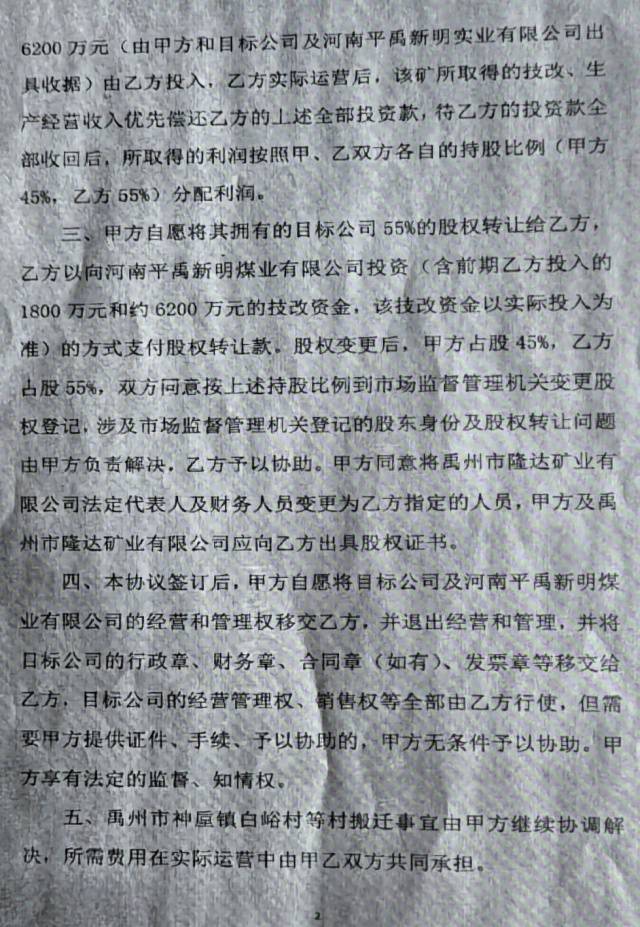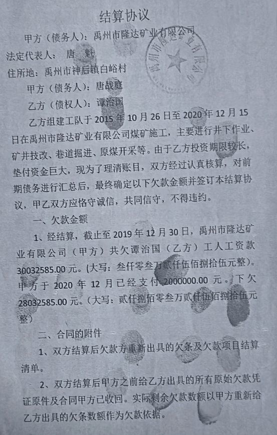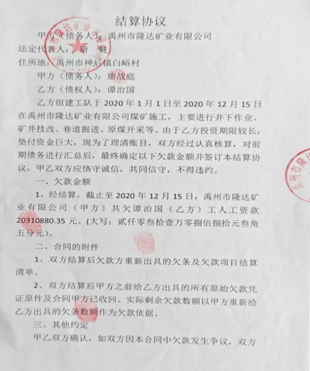 河南平禹新明煤业欠薪乱象调查之二:几亿煤炭销售款进入个人腰包?律师支招 独立撰稿人 李堂平 前面撰稿人讲了河南平禹新明煤业公司的经营管理混乱、不合常理的问题。现在我们再来看看新明煤业的管理给股东隆达矿业造成了怎样的损失和其法律责任吧! 股东频繁更迭与资金疑云 隆达矿业作为负责平禹新明煤业实际经营的股东,自身治理极不规范:隆达矿业公司本就是河南省政府要求兼并重组的煤矿,一般来说兼并重组后原煤矿注销由兼并后的企业生产经营。然后新明煤业就是采用国企股东和原煤矿企业股东并存方式存在,没有个人股东。这就形成了私企隆达矿业甚至连办公室都没有了,就是几个股东在操作。由于没钱生产经营就四处筹资拉股东,由股东生产经营煤矿。爱企查显示其为“失信人,自身风险79条、司法案件37条、涉诉关系6个” 这样就造成了控制权频繁变动:2020年底至2023年,其股权在谭治国、唐战廷、河南圣钰源贸易公司(实控人张峰杰)、杨晓冰(实控人杨广西)之间多次转让,导致经营主导权不断易手。 2020年12月17日,新明煤业的股东隆达矿业法人股东唐魁退出,谭治国接受其54%股份,唐战廷和李留中各占23%不变,2021年1月15日,隆达矿业公司股东李留中退出,其23%股份交由谭治国后占股77%。 2021年1月25日,唐战廷、谭治国及目标公司隆达矿业公司和乙方张峰杰签订《股权转让协议》,约定乙方自愿向平禹新明煤业公司投入资金1800万元用于偿还隆达矿业及公司股东因筹建、生产经营所欠债务的偿还;乙方进驻煤矿后,平禹新明煤业技改资金约6200万元由乙方投入;甲方自愿将其拥有的目标公司55%股份转让给乙方,乙方以向平禹新明煤业投资的1800万元和6200万元的技改资金的方式支付股权转让款;本协议签订后,甲方自愿将目标公司及平禹新明煤业公司的经营和管理权移交乙方。之后隆达矿业股权变更为河南圣钰源贸易公司占55%,唐战廷占23%,谭治国占22%,法人为张峰杰。也就是说此次股权转让就是圣钰源公司拿出8000万元投资平禹新明煤业公司,谭治国拿出了自己所持有的55%股权转给圣钰源公司。 之后甲方圣钰源、乙方杨晓冰、丙方唐战廷、丁方谭治国在2023年8月7日签订的《股权转让协议》显示,为启动恢复新明煤矿决定吸收乙方为隆达矿业公司股东。经协商甲方圣钰源将30%股权转让给乙方,为恢复新明煤矿生产所需资金由乙方投资。协议生效后由乙方负责对煤矿的生产、销售、技术、安全实施全面管理。 但股东的投资承诺未兑现,股权依旧进行了变更。圣钰源公司承诺投入巨资换取控股权,但实际投入远未到位,部分投资款以存在抵押的房产折抵,且资金用途混乱。而之后杨广西承诺的改造投资资金也没有到位。 圣钰源公司实际投资了3100万元,下余款项用31套房产折合3100万元作为投资款,企图证明圣钰源已经完成6200万元的投资。但同时圣钰源又将该3100万元投资款作为借款让唐战廷出具借条,让谭治国担保,将谭治国在隆达矿持有的22%股权质押,该款项同时又成为了借款。其实圣钰源并没有实际完成投资。圣钰源以投资名誉和借款名义给的该31套房产核心是用于抵偿唐战廷经营期间矿上对外债务,结果圣钰源给的该31套房产在银行存在抵压情形,至今总共就备案了10套房产,剩余房产部分已经被圣钰源偷偷卖掉,矿上对外欠唐战廷与谭治国工队债务并没有实际解决,而技改资金也因此没有完全落实。 几亿元煤炭销售款没有进入公司账户 下欠采煤队工资款项近7千万 谭治国透露,因为借款等债务公司被卷入多起诉讼,被强制执行。由此公司管理者便安排煤炭销售款进入实控人个人账户。 这样造成的结果就是唐战廷在成为实控人期间所经手的收入进入了他指定的账户,2020年矿上生产销售原煤85221.01吨,营业收入约3000万元。 2020年因唐战廷拖欠工资行为导致公司首次停工停产,造成工人大量上访。截至2020年12月,谭治国工队累计向隆达公司投入生产资金,借款,保证金等达5100万元,上述资金项部分用于公司井下建设、生产经营,是公司前期技改加运营的重要资金支撑,部分资金汇入实际控制人唐战廷指定账户。 2020年12月15日,隆达矿业公司和谭治国签订结算协议,确定2015年10月26日至2019年12月30日,隆达矿业公司下欠谭治国工人工资款为2803万2585元。